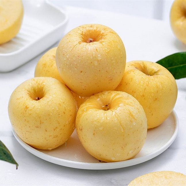 แอปเปิ้ลสีทองเป็นพันธุ์ญี่ปุ่นที่ได้รับการแนะนำโดยมณฑลซานตง ซึ่งเป็นมณฑลผลไม้ที่สำคัญ มีรสชาติที่แตกต่างจากแอปเปิ้ลทั่วไปที่มักจะมีรสเปรี้ยวเล็กน้อย พูดง่ายๆ ก็คือมีรสชาติที่เกือบจะหวาน! ไม่ใช่แค่หวานแต่ยังกรอบมากอีกด้วย แต่ละคำที่กัดคือ "คลิก" ของความกรุบกรอบ และหลังจากกินแอปเปิ้ลแล้ว จะมีกลิ่นหอมของน้ำผึ้งผลไม้อบอวลอยู่ในปาก